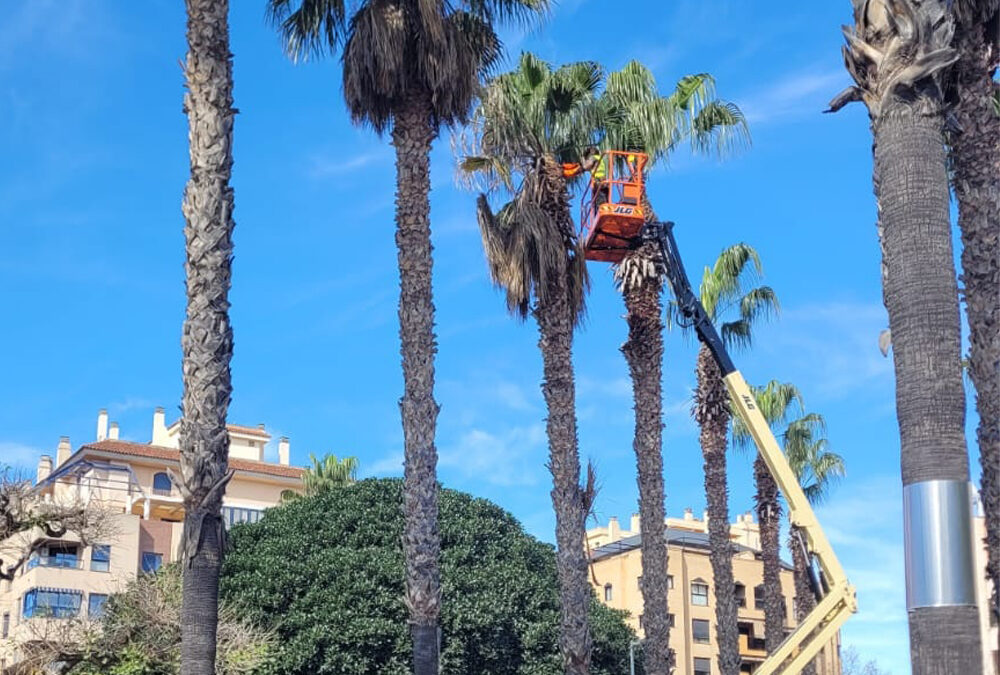 Esta intervención se ha centrado en la gestión y saneamiento de palmas secas, con el objetivo de reducir la caída de restos vegetales sobre el viario y las zonas de tránsito peatonal, contribuyendo así a mejorar la seguridad y la limpieza urbana.