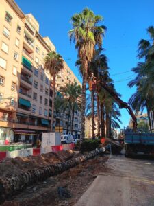 • Solivent: Trasplante de Washingtonias Monumentales en la Calle Reus, un Desafío Superado
