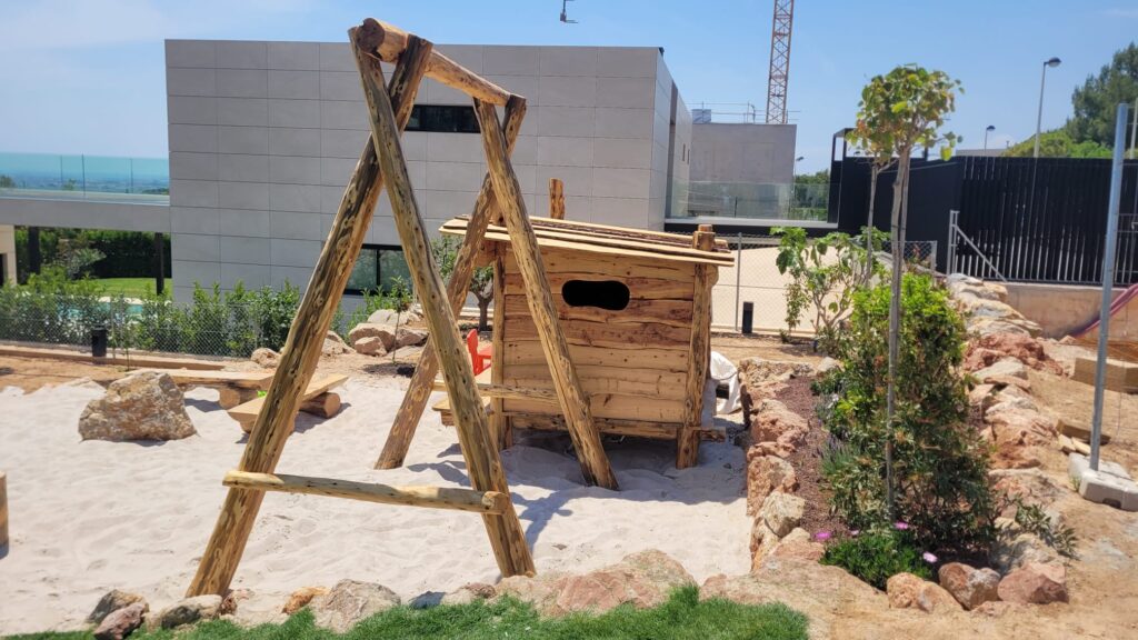– Columpio: Fabricado con maderas sostenibles, el columpio proporciona una diversión sin fin mientras se mantiene el compromiso con la sostenibilidad. Su estructura firme y segura es ideal para niños de todas las edades.